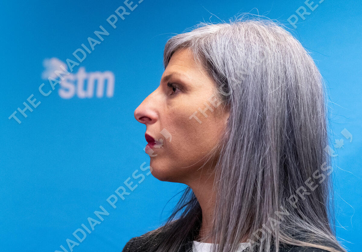 Marie-Claude Leonard, general director of Montreal's transit agency (STM) speaks to the media regarding ongoing labour negotiations with unions in Montreal on Friday, Nov. 7, 2025. THE CANADIAN PRESS/Christinne Muschi