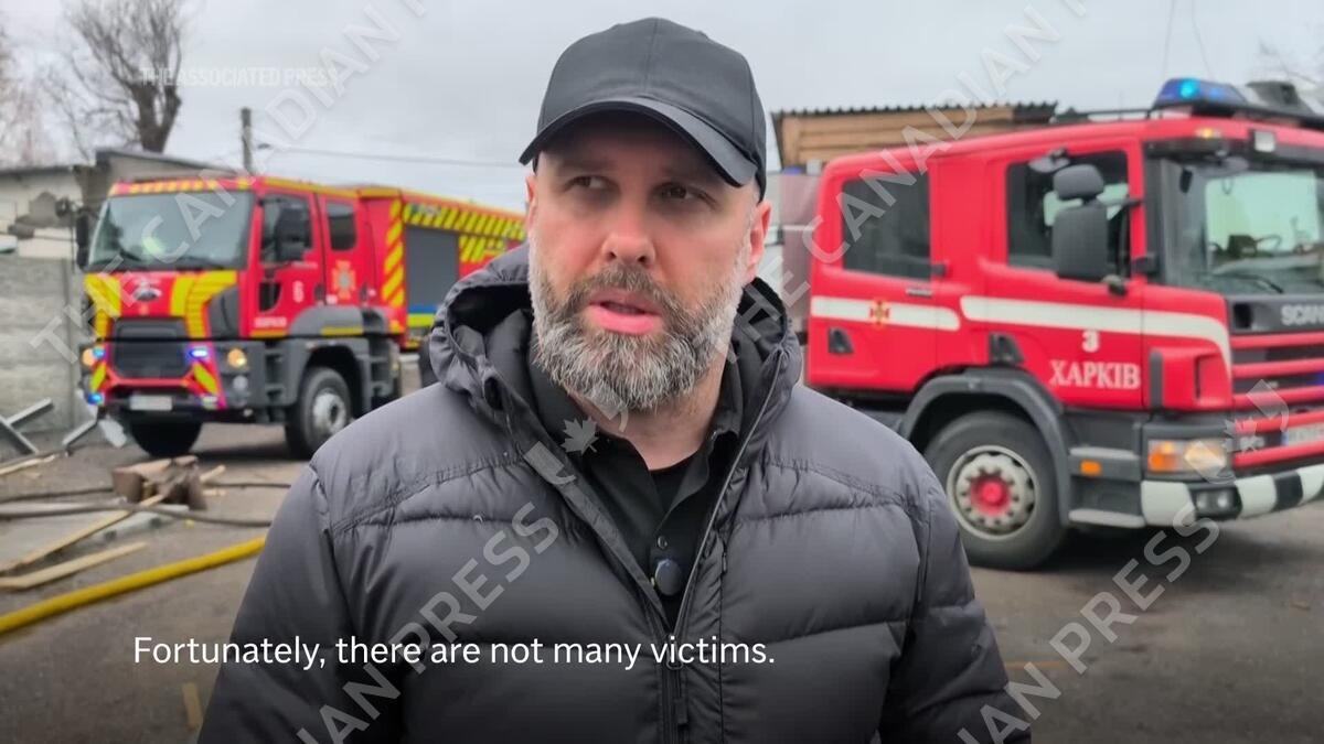 CP174514876 | Ukrainian firefighters respond after Kharkiv targeted by Russian drone attack barrage