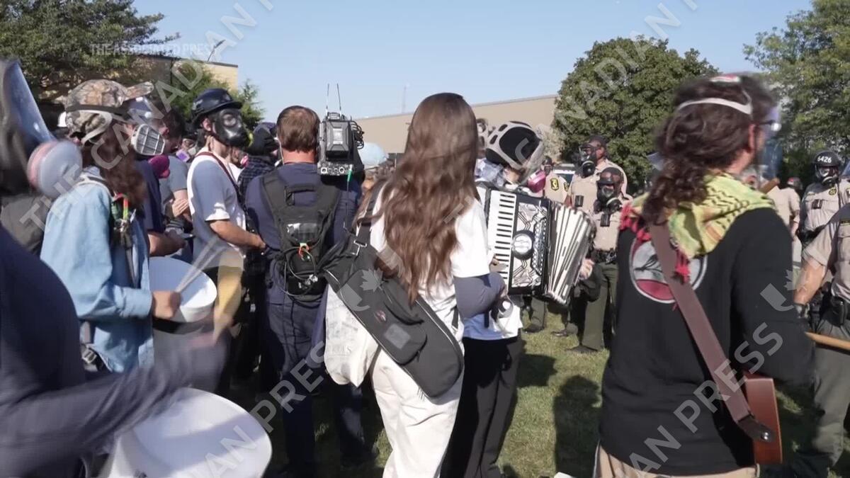 CP175071851 | Federal agents fire chemicals as protesters hang signs, try to block car at immigration site outside Chicago