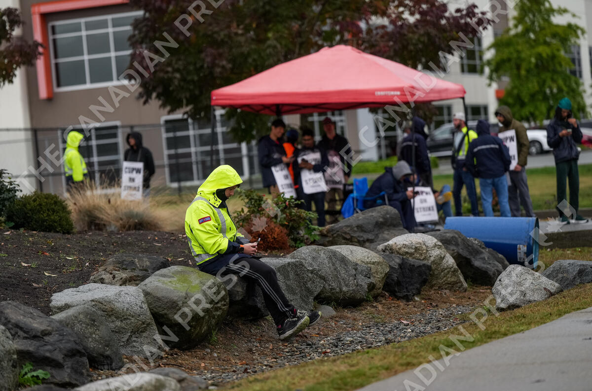 Striking Canada Post workers picket outside a delivery depot, in Burnaby, B.C., on Monday, September 29, 2025. The Canadian Union of Postal Workers took to the picket lines Thursday after Ottawa announced sweeping changes to the Crown corporation's operations to address its troubled financial situation. THE CANADIAN PRESS/Darryl Dyck