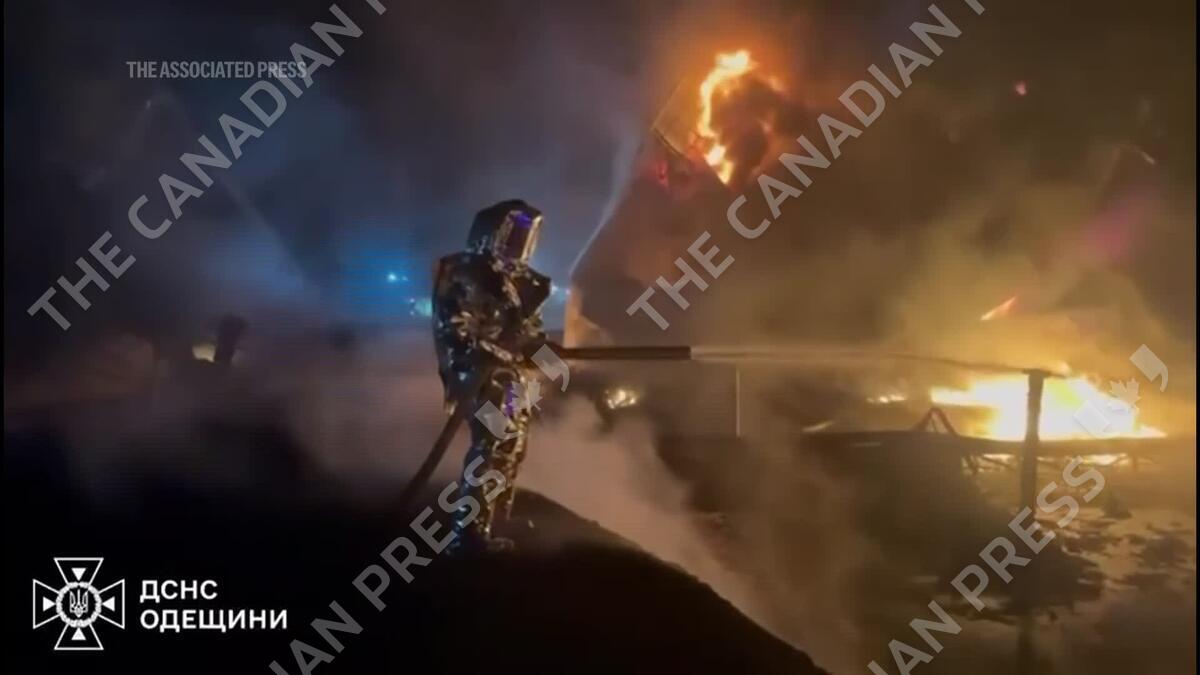 Ukraine emergency workers battle massive fire following Russian drone attack on Odesa region