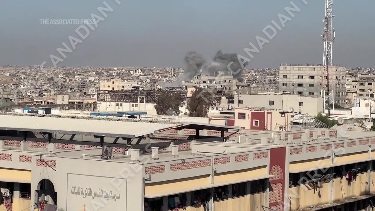 CP174346295 | Smoke seen as Israeli strikes in Gaza Strip continue