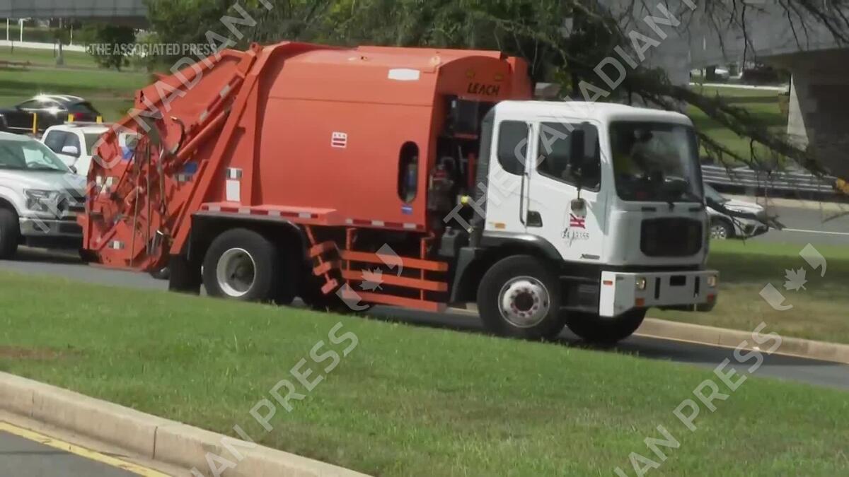 Near the Institute of Peace, AP journalists saw about a dozen homeless D.C. residents packing their belongings. Items weren’t being forcibly thrown out by law enforcement, but a skid loader was clearing an abandoned campsite. (AP Video by Nathan Ellgren)