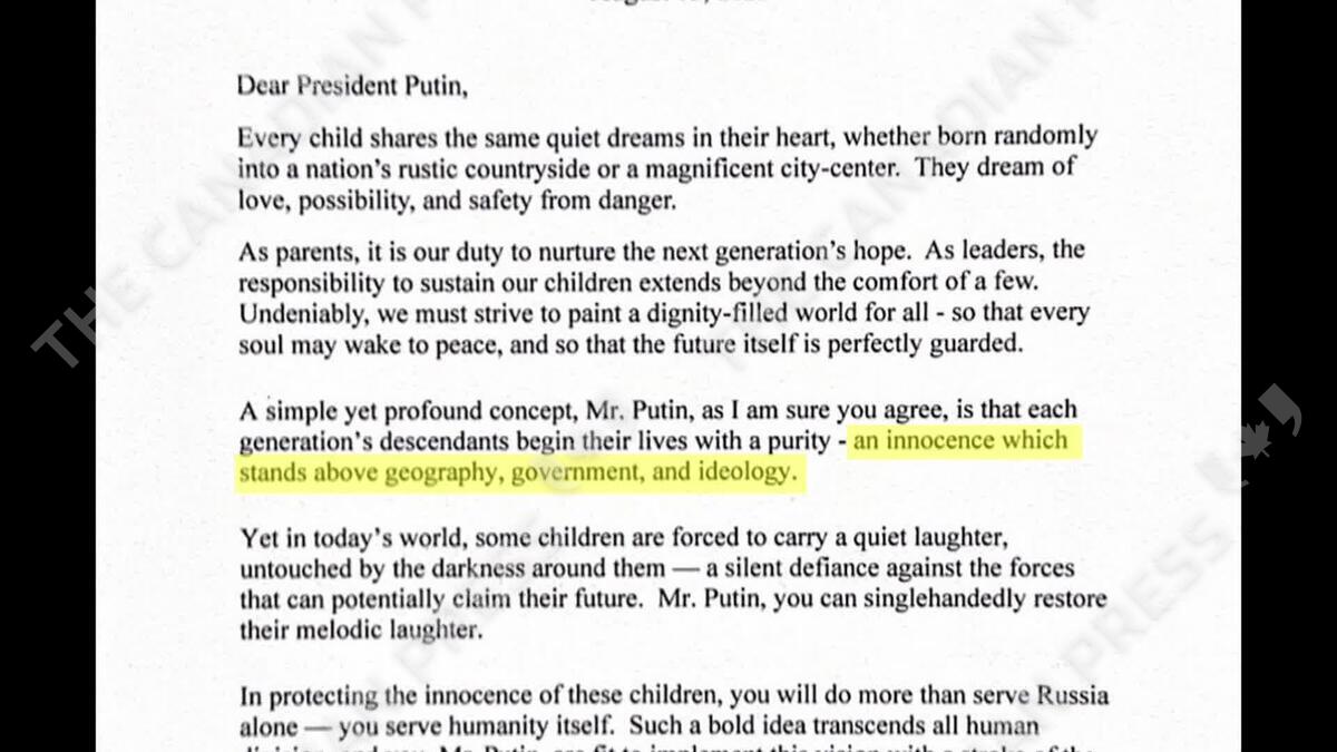 In letter to Putin, US first lady asks him to consider the children in push to end war in Ukraine
