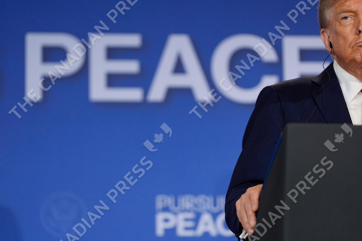 President Donald Trump listens during a news conference with Russia's President Vladimir Putin at Joint Base Elmendorf-Richardson, Alaska, Friday, Aug. 15, 2025. (AP Photo/Julia Demaree Nikhinson)