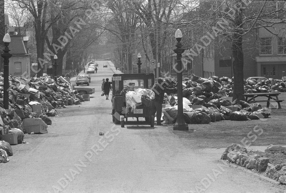 From the archival negative sleeve: A garbage strike piles up waste near Allan Gardens in Toronto on April 28, 1972. THE CANADIAN PRESS/Blaise Edwards