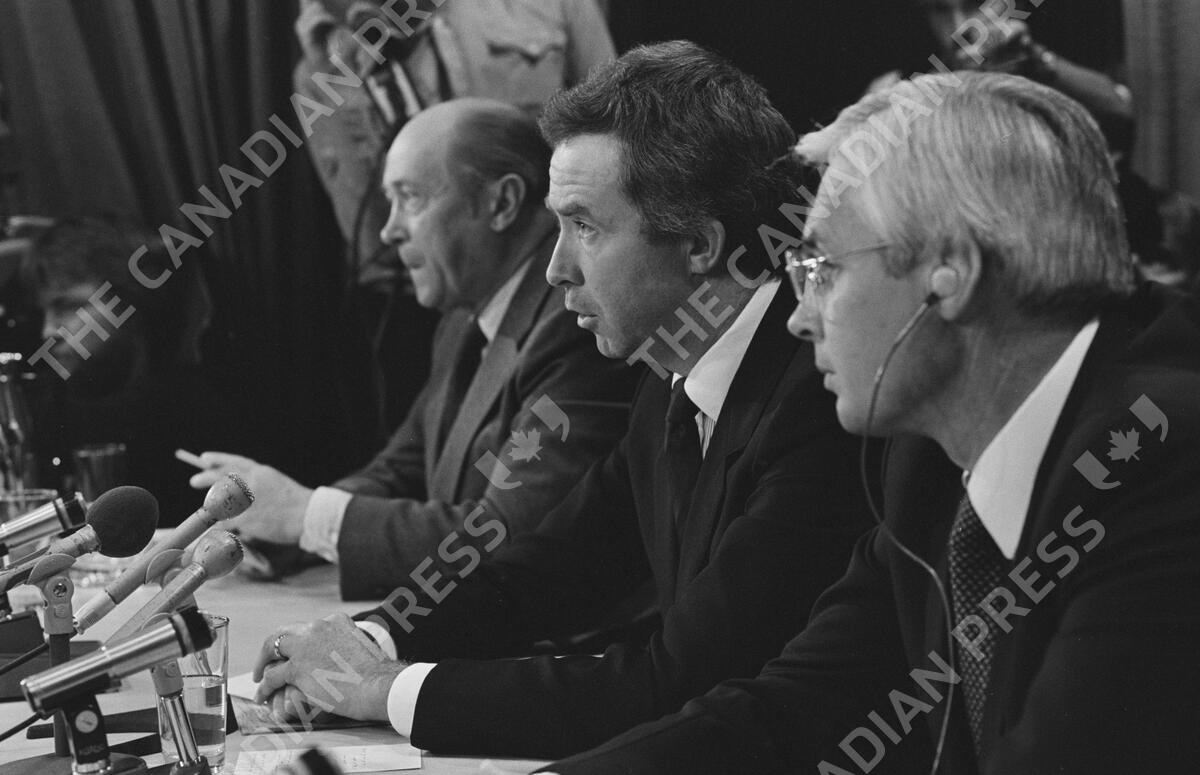 From the archival negative sleeve: Joe Clark press conference on Constitution Day, September 28, 1981. THE CANADIAN PRESS/Carl Bigras