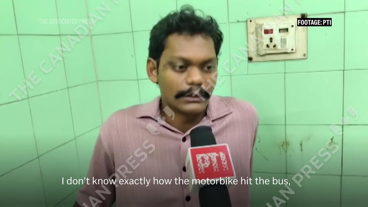 Bus catches fire after being hit by a motorcycle in southern India, killing at least 25