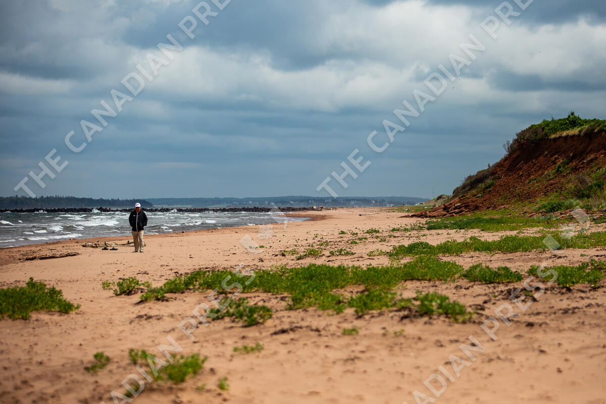 A visitor walks along the shoreline on North Rustico Beach in Prince Edward Island National Park, P.E.I., Monday, Jul 21, 2025. THE CANADIAN PRESS/Giordano Ciampini