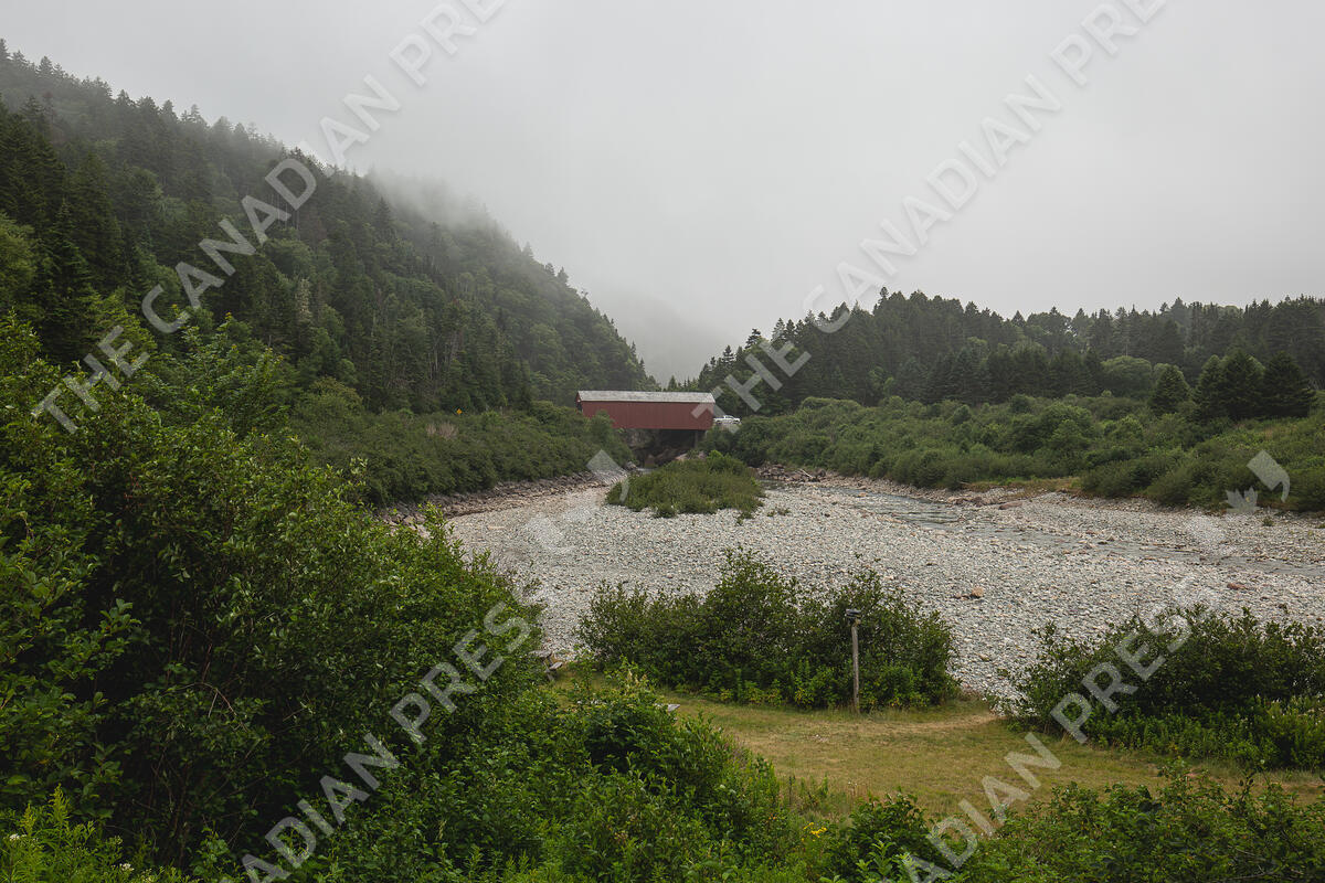 The Point Wolfe Bridge, one of 56 covered bridges in the province, is seen spanning over the Oxbow river in Fundy National Park, in Alma, N.B., Friday, July 25, 2025. THE CANADIAN PRESS/Giordano Ciampini