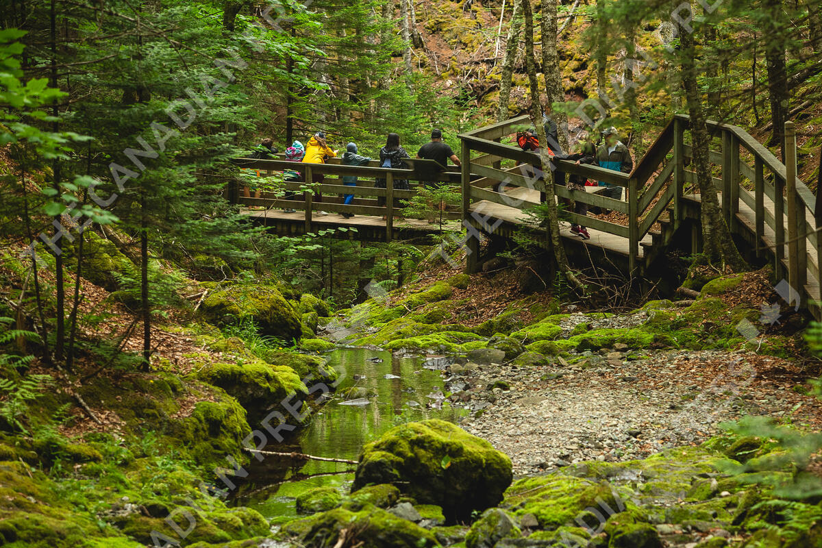 Visitors look on at the Dickson Brook along a hiking trail in Fundy National Park, in Alma, N.B., Friday, July 25, 2025. THE CANADIAN PRESS/Giordano Ciampini