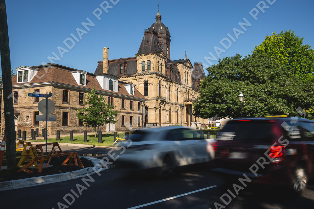 Motorists pass in front of the Legislative Assembly Building, home of the provincial parliament, in Fredericton, Saturday, July 26, 2025. THE CANADIAN PRESS/Giordano Ciampini