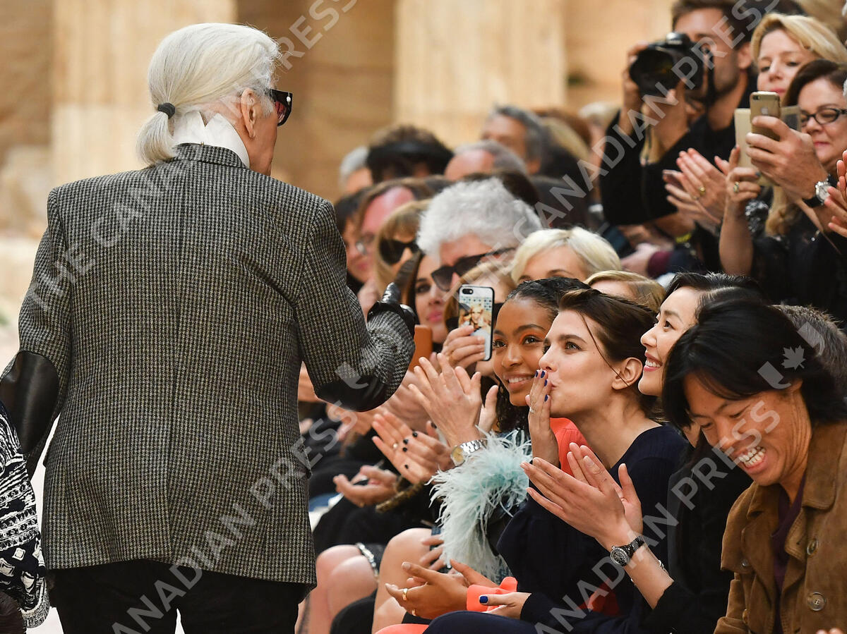 Charlotte Casiraghi blows designer Karl Lagerfeld a kiss during the Chanel Cruise 2017/2018 Collection at Grand Palais on May 3, 2017 in Paris, France. - Charlotte Casiraghi has just been appointed new ambassador and spokesperson for Chanel. It will be the image of the spring-summer 2021 collection designed by Virginie Viard, photographed in Monaco by Inez van Lamsweerde and Vinoodh Matadin. Photo by Laurent Zabulon/ABACAPRESS.COM