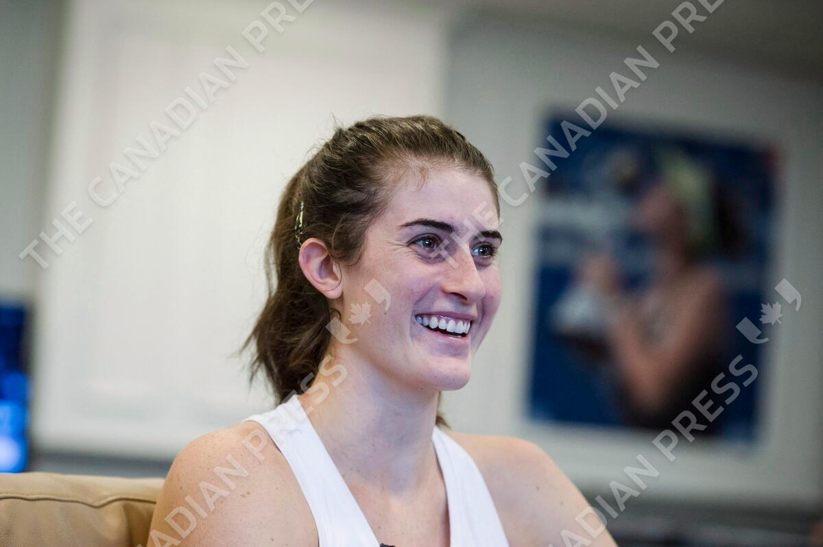 Canadian tennis player Rebecca Marino smiles during an interview in Toronto on November 2, 2017. Rebecca Marino says her game hasn't changed much physically in the eight years since her last appearance at a tennis Grand Slam. After overcoming numerous challenges in road back to the sport's biggest stage, however, Marino says she is in a better place mentally. THE CANADIAN PRESS/Christopher Katsarov