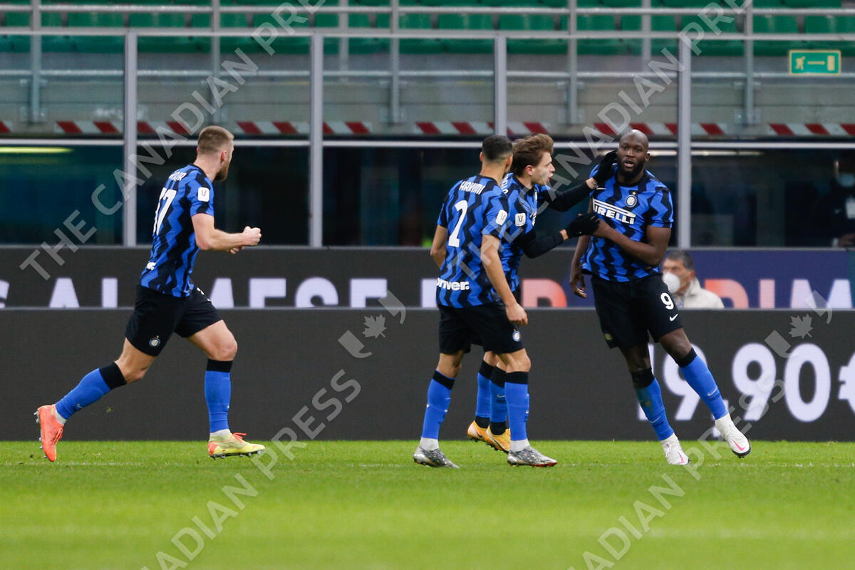 Romelu Lukaku (FC Internazionale) celebrates after scoring the equalizer during FC Internazionale vs AC Milan, Italian football Coppa Italia match in Milan, Italy, January 26 2021