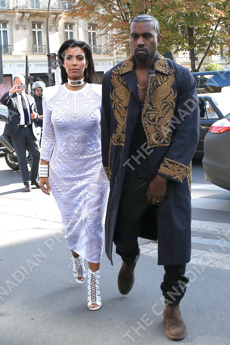 Kim Kardashian and husband Kanye West are seen at L'Avenue restaurant where they had lunch with Kris Jenner and Kendall Jenner during the Paris Fashion Week, in Paris, France on September 25, 2014. Photo by ABACAPRESS.COM