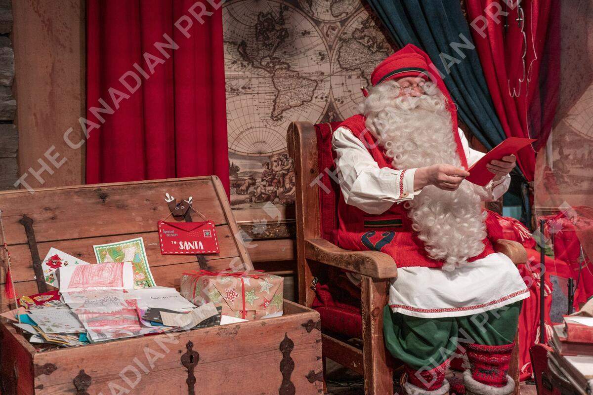 Santa Claus, also known as Father Christmas, reading his mail at the Santa's Office at the Santa's Village in the Arctic Circle, Rovaniemi, Finnish Lapland, on December 18, 2020. KAISA SIREN / LEHTIKUVA - FINLAND OUT. NO THIRD PARTY SALES.