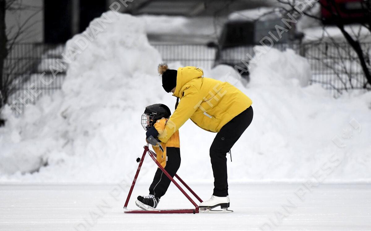 Skaters in the open air ice rink in Helsinki. LEHTIKUVA / VESA MOILANEN - FINLAND OUT. NO THIRD PARTY SALES.