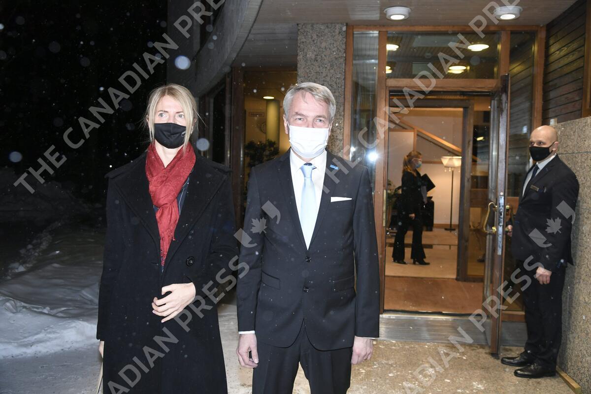 Finnsh Foreign Minister Pekka Haavisto met with his Estonian counterpart Eva-Maria Liimets (L) in Helsinki, Finland January 29, 2021. LEHTIKUVA / MARKKU ULANDER - FINLAND OUT. NO THIRD PARTY SALES.