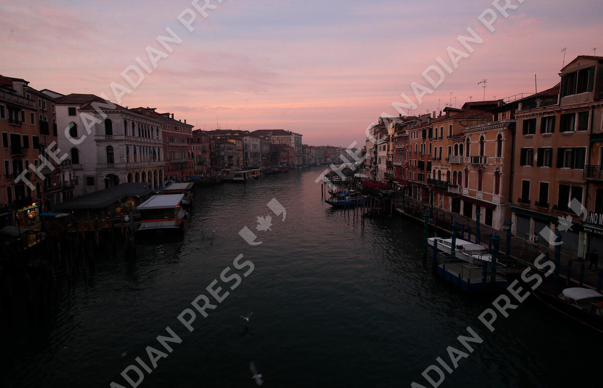 A view of the Canal Grande or Grand Canal, in Venice, Italy, Saturday, Jan. 30, 2021. The canal city's Carnival festivities should have started Saturday, but the COVID-19 pandemic made the annual appointment for more than two weeks of merry-making impossible. (AP Photo/Antonio Calanni)
