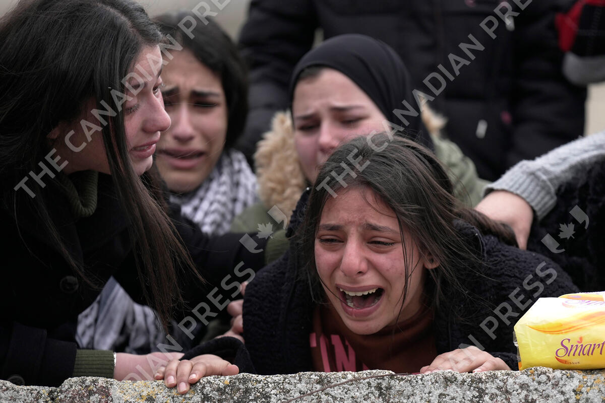 A relative mourns Palestinian Ahmad Saif, 23, who died as a result of injuries sustained on March 1, during clashes with Israeli soldiers following a demonstration, during his funeral in the West Bank village of Burqa, Wednesday, March 9, 2022. (AP Photo/Majdi Mohammed)
