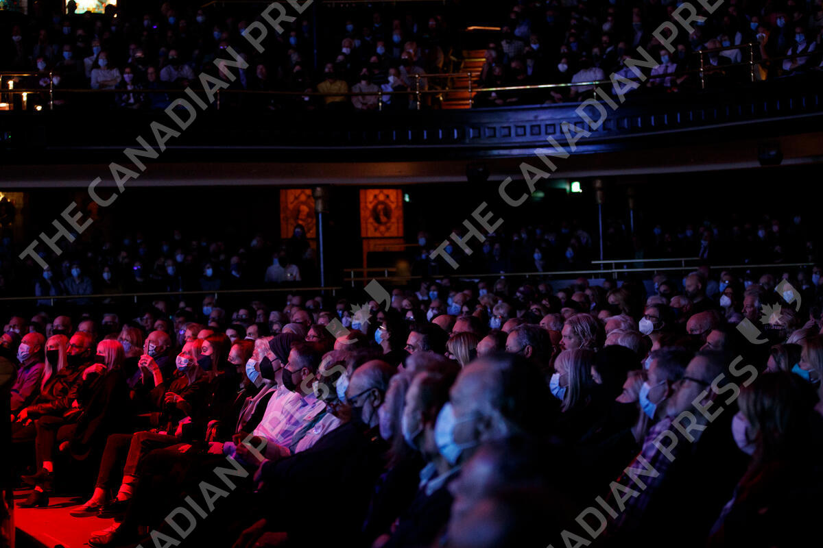 People watch from their seats as Gordon Lightfoot performs during the first concert at the the newly re-opened Massey Hall in Toronto, Thursday, Nov. 25, 2021. THE CANADIAN PRESS/Cole Burston