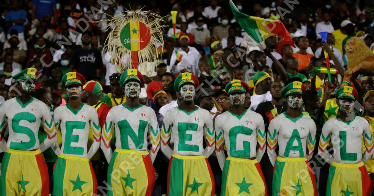Senegal's supporters ahead the African Cup of Nations 2022 quarter-final soccer match between Egypt and Morocco at the Ahmadou Ahidjo stadium in Yaounde, Cameroon, Sunday, Jan. 30, 2022. (AP Photo/Sunday Alamba)