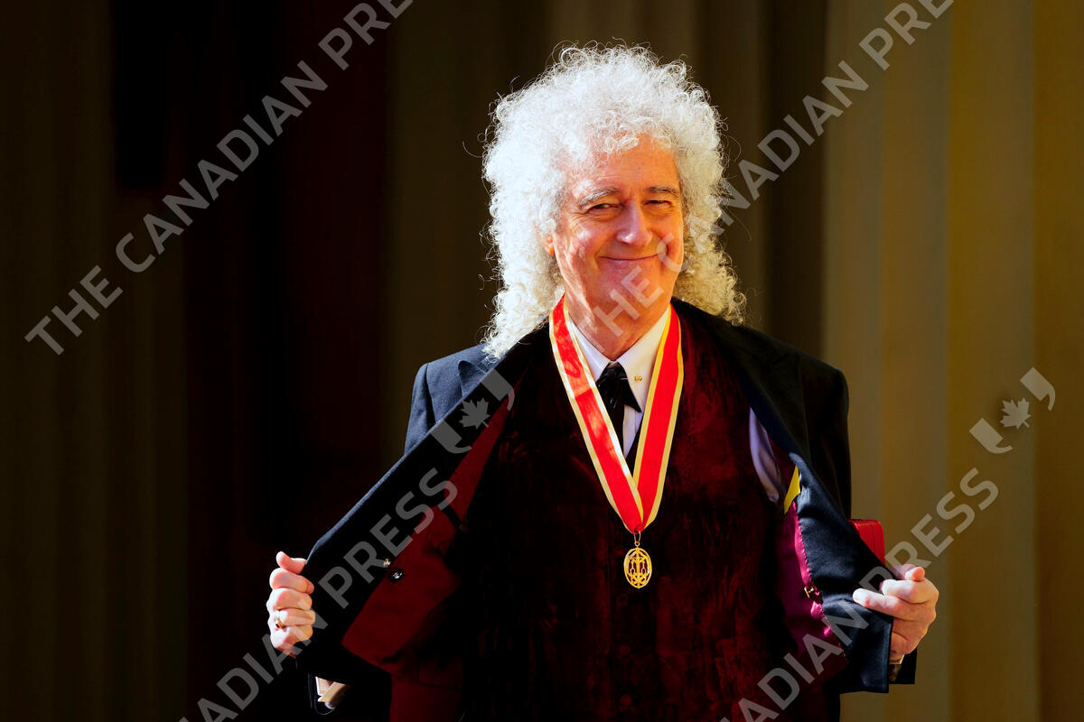 Sir Brian May, musician, songwriter and animal Welfare Advocate, poses after being made a Knight Bachelor by King Charles III during an investiture ceremony at Buckingham Palace, London, Tuesday March 14, 2023. (Victoria Jones/Pool via AP)