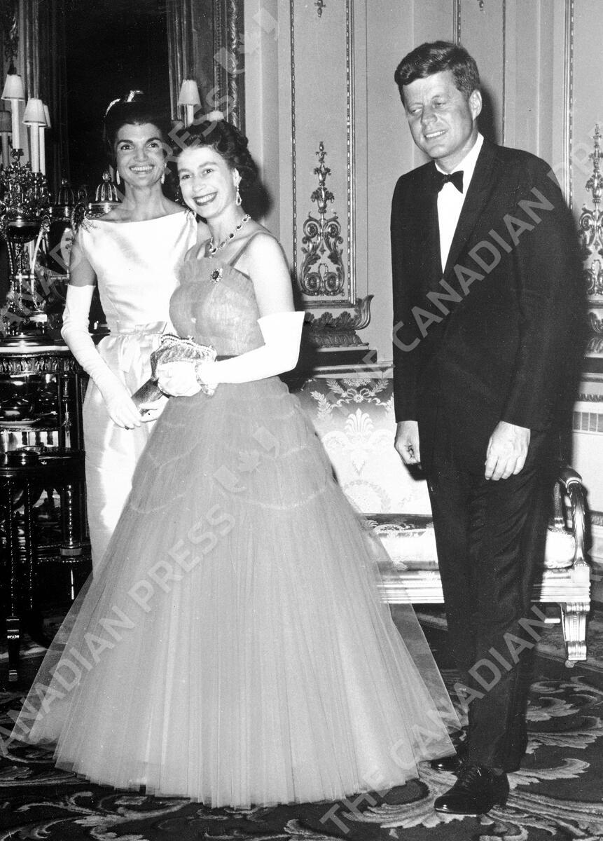 FILE - Queen Elizabeth II, center, walks with U.S. President John F. Kennedy, right, and his wife Jacqueline Kennedy, as they enter an ante-room in Buckingham Palace, London, June 5, 1961, before a dinner given by the Queen in honour of the visiting President and his wife. Queen Elizabeth II, Britain's longest-reigning monarch and a rock of stability across much of a turbulent century, died Thursday, Sept. 8, 2022, after 70 years on the throne. She was 96. (AP Photo, File)