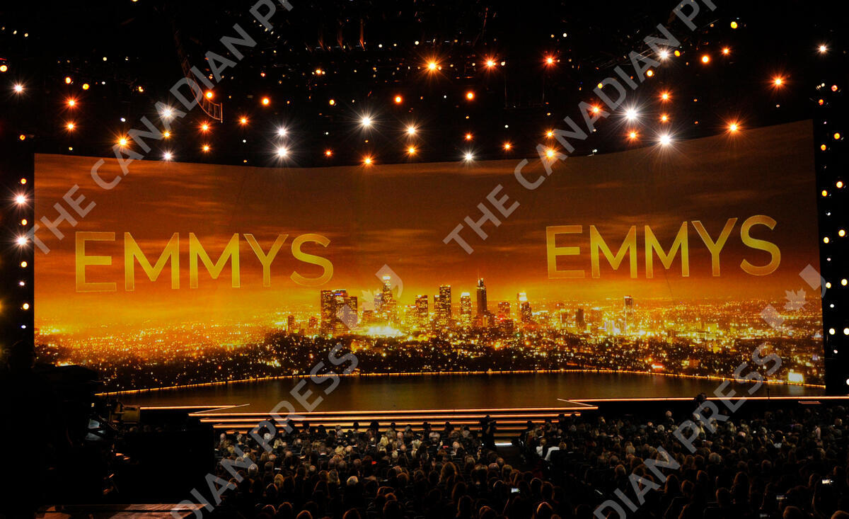 FILE - This Sept. 22, 2019 file photo shows a view of the stage at the 71st Primetime Emmy Awards in Los Angeles. The 74th Primetime Emmy Awards are set for Monday, Sept. 12, at the Microsoft Theatre in Los Angeles. The roughly three-hour ceremony will begin at 8 p.m. EDT and air live on NBC and, for free, on the streaming service Peacock. (Photo by Chris Pizzello/Invision/AP, File)