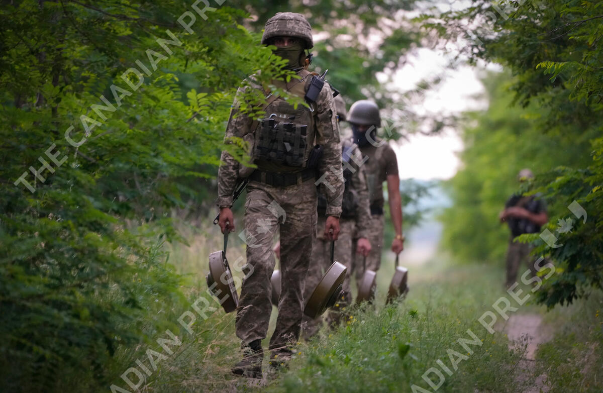 FILE - Soldiers of Ukraine's special operations unit carry anti-tank mines to install them on the Russian troops' potential way in a forest in the Donetsk region, Ukraine, late Tuesday, June 14, 2022. As the war slogs on, a growing flow of Western weapons over the summer is now playing a key role in the counteroffensive, helping Ukraine significantly boost its precision strike capability. (AP Photo/Efrem Lukatsky, File)