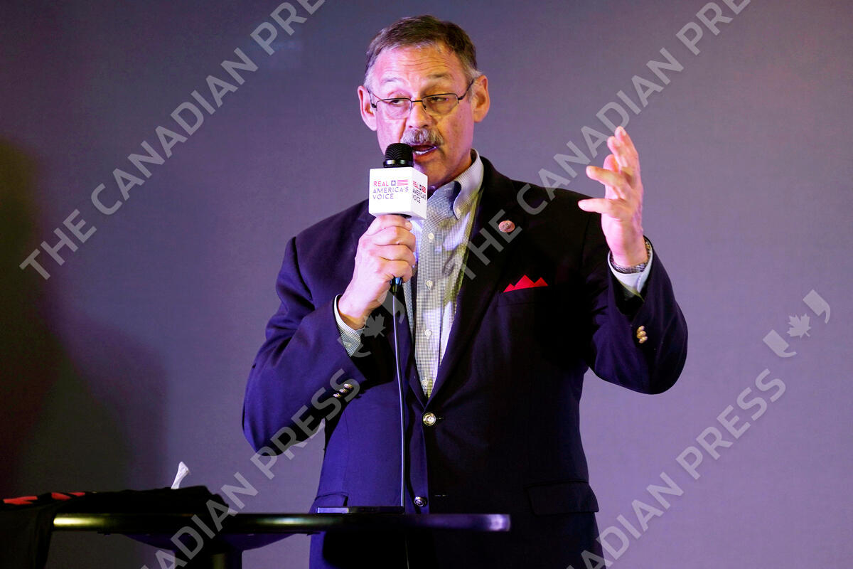 FILE - Rep. Mark Finchem, of Arizona, speaks during an election rally in Richmond, Va., on Oct. 13, 2021. An Associated Press review has found that more than a quarter of Republican candidates for statewide office that play some role in overseeing, certifying or defending elections across 38 states supported overturning the 2020 presidential election (AP Photo/Steve Helber, File)
