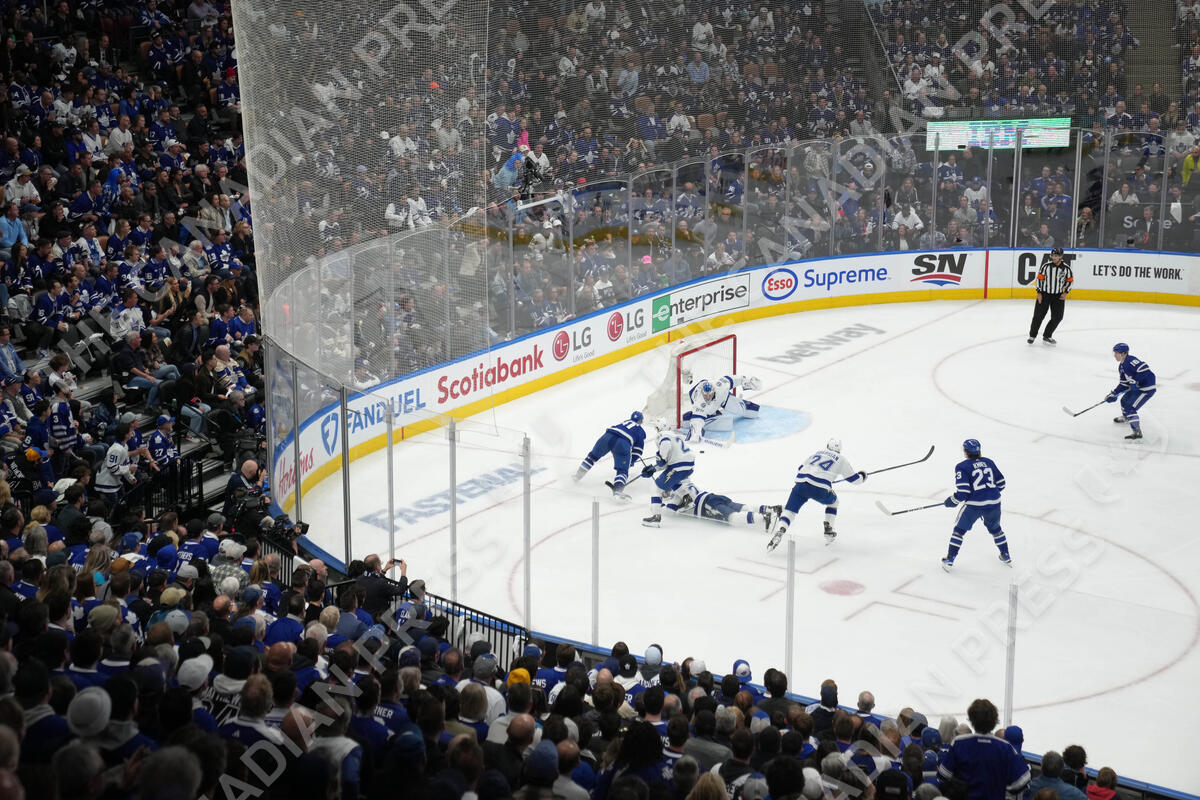 Toronto Maple Leafs forward John Tavares (91) shoots on Tampa Bay Lightning goaltender Andrei Vasilevskiy (88) during third period NHL Stanley Cup playoff hockey action in Toronto on Thursday, April 27, 2023. THE CANADIAN PRESS/Chris Young