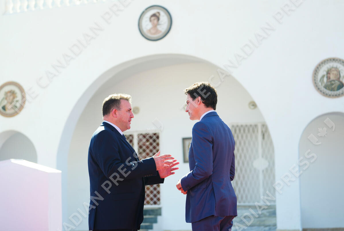 Prime Minister Justin Trudeau talks with New Brunswick Minister of Local Government and Local Governance Reform Daniel Allain during the Francophonie Summit in Djerba, Tunisia on Sunday, Nov. 20, 2022. THE CANADIAN PRESS/Sean Kilpatrick