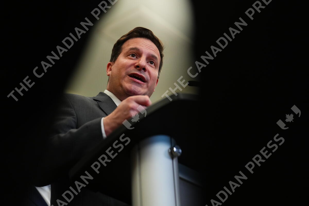 Public Safety Minister Marco Mendicino holds a news conference in the foyer of the House of Commons in Ottawa, Wednesday, May 31, 2023. THE CANADIAN PRESS/Sean Kilpatrick