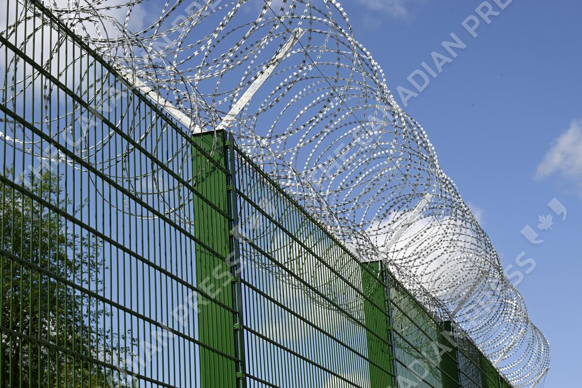 Barbed wire on the pilot border fence pictured during the media event of the Finnish Border Guard RAJA at the Finnish - Russian border in Pelkola, Imatra, Finland, on May 30, 2023. Finland will build a fence on the border to Russia. The total fenced area will be of 200km and placed in different strategic points. LEHTIKUVA / MARKKU ULANDER - FINLAND OUT. NO THIRD PARTY SALES.