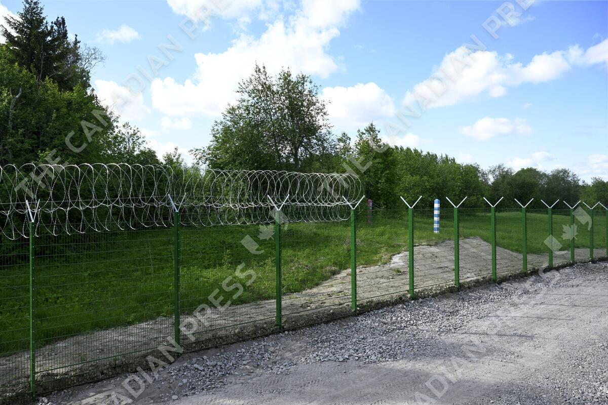 The pilot border fence pictured during the media event of the Finnish Border Guard RAJA at the Finnish - Russian border in Pelkola, Imatra, Finland, on May 30, 2023. Finland will build a fence on the border to Russia. The total fenced area will be of 200km and placed in different strategic points. LEHTIKUVA / MARKKU ULANDER - FINLAND OUT. NO THIRD PARTY SALES.
