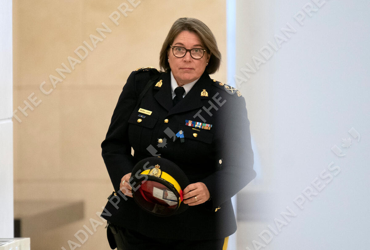 RCMP Commissioner Brenda Lucki makes her way to the Standing Committee on Public Safety and National Security, in Ottawa, Monday, Oct. 31, 2022. THE CANADIAN PRESS/Adrian Wyld