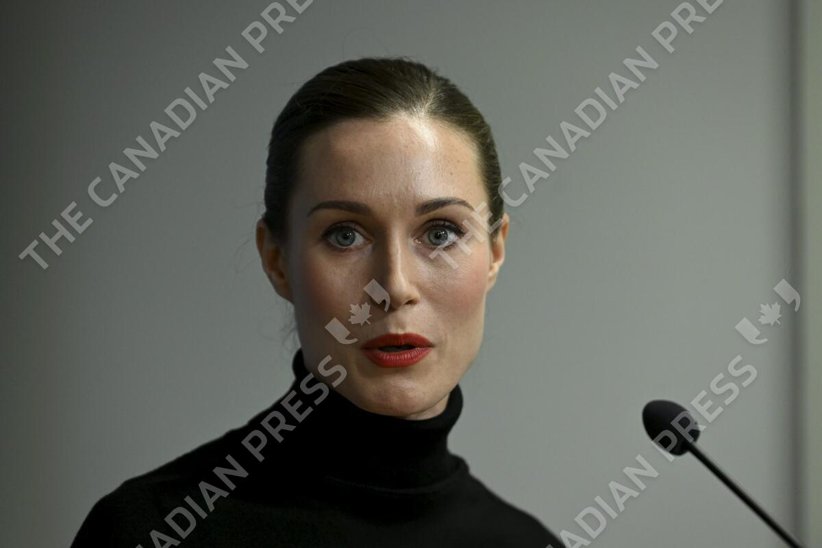 Prime Minister of Finland Sanna Marin during her joint press conference with Sweden's new Prime Minister Ulf Kristersson (not in picture) after their official meeting at the PM's official residence Kesäranta in Helsinki, Finland on Friday, 28th Oct., 2022. LEHTIKUVA / VESA MOILANEN - FINLAND OUT. NO THIRD PARTY SALES.