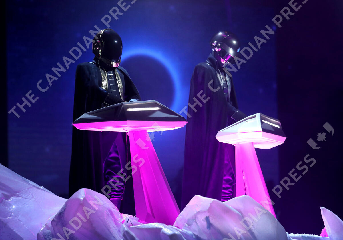 Daft Punk performs at the 59th annual Grammy Awards on Sunday, Feb. 12, 2017, in Los Angeles. (Photo by Matt Sayles/Invision/AP)