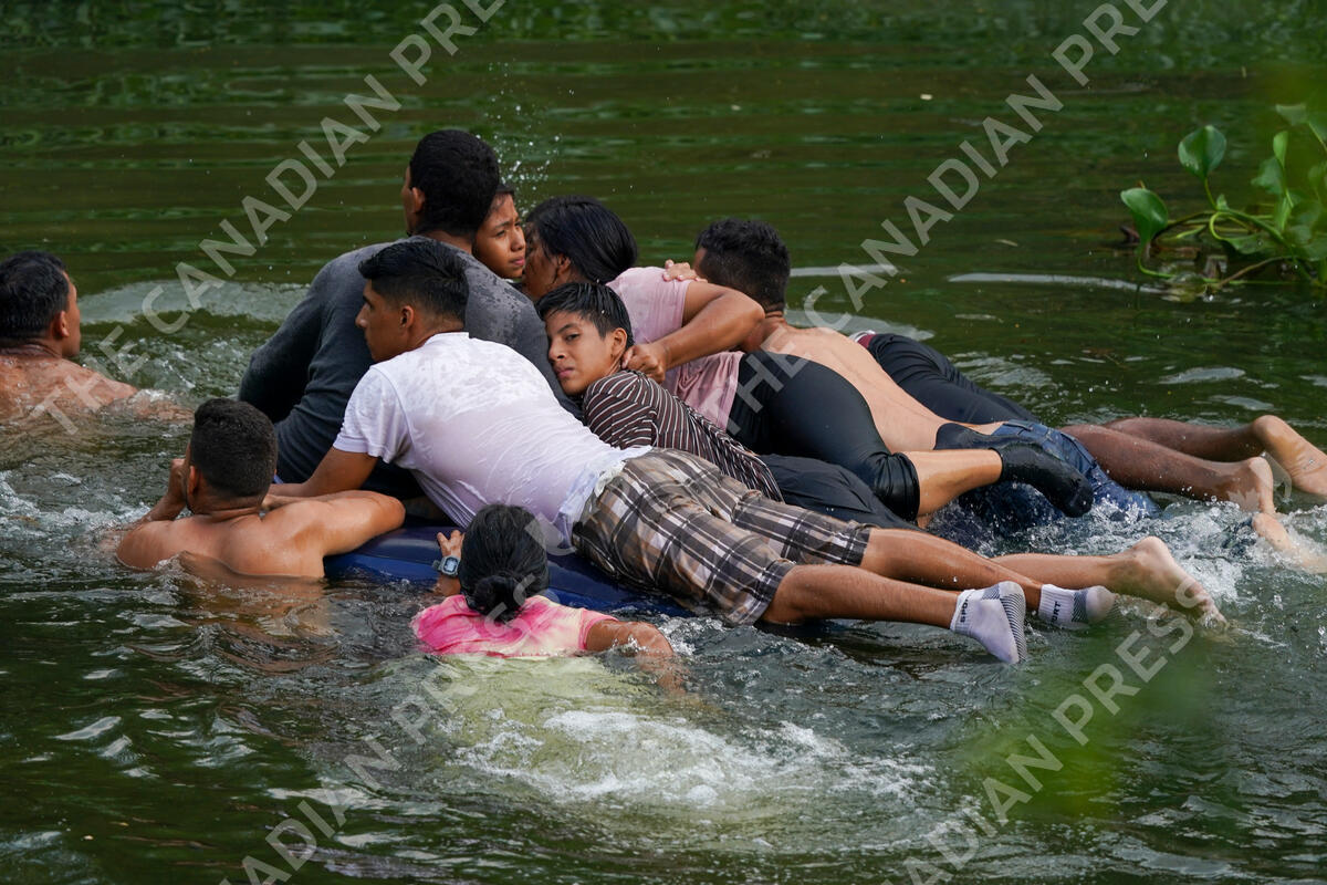 Migrants cross the Rio Bravo on a mattress into the United States from Matamoros, Mexico, Tuesday, May 9, 2023. The U.S. is preparing for the Thursday, May 11th end of the Title 42 policy, linked to the coronavirus pandemic that allowed it to quickly expel many migrants seeking asylum. (AP Photo/Fernando Llano)