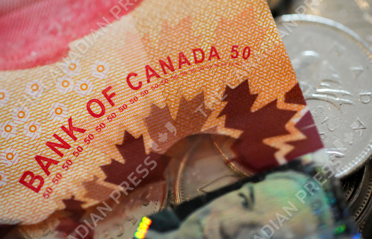 The Bank of Canada wording on a Canadian 50 dollar bill is pictured in Ottawa on Wednesday, Jan. 11, 2023. THE CANADIAN PRESS/Sean Kilpatrick