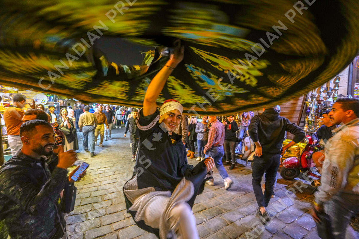 A whirling dervish spins during a traditional performance during the holy month of Ramadan at Al Muezz Street in Cairo, Egypt, late Tuesday, April 4, 2023. (AP Photo/Amr Nabil)