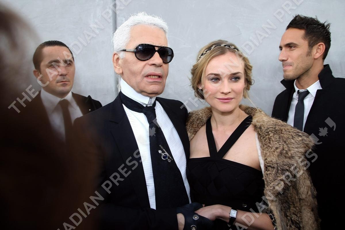 Karl Lagerfeld and Diane Kruger attend the Chanel Haute-Couture Spring-Summer 2008 fashion show held at the Grand Palais, in Paris, France, on January 22, 2008. Photo by Nebinger-Taamallah/ABACAPRESS.COM