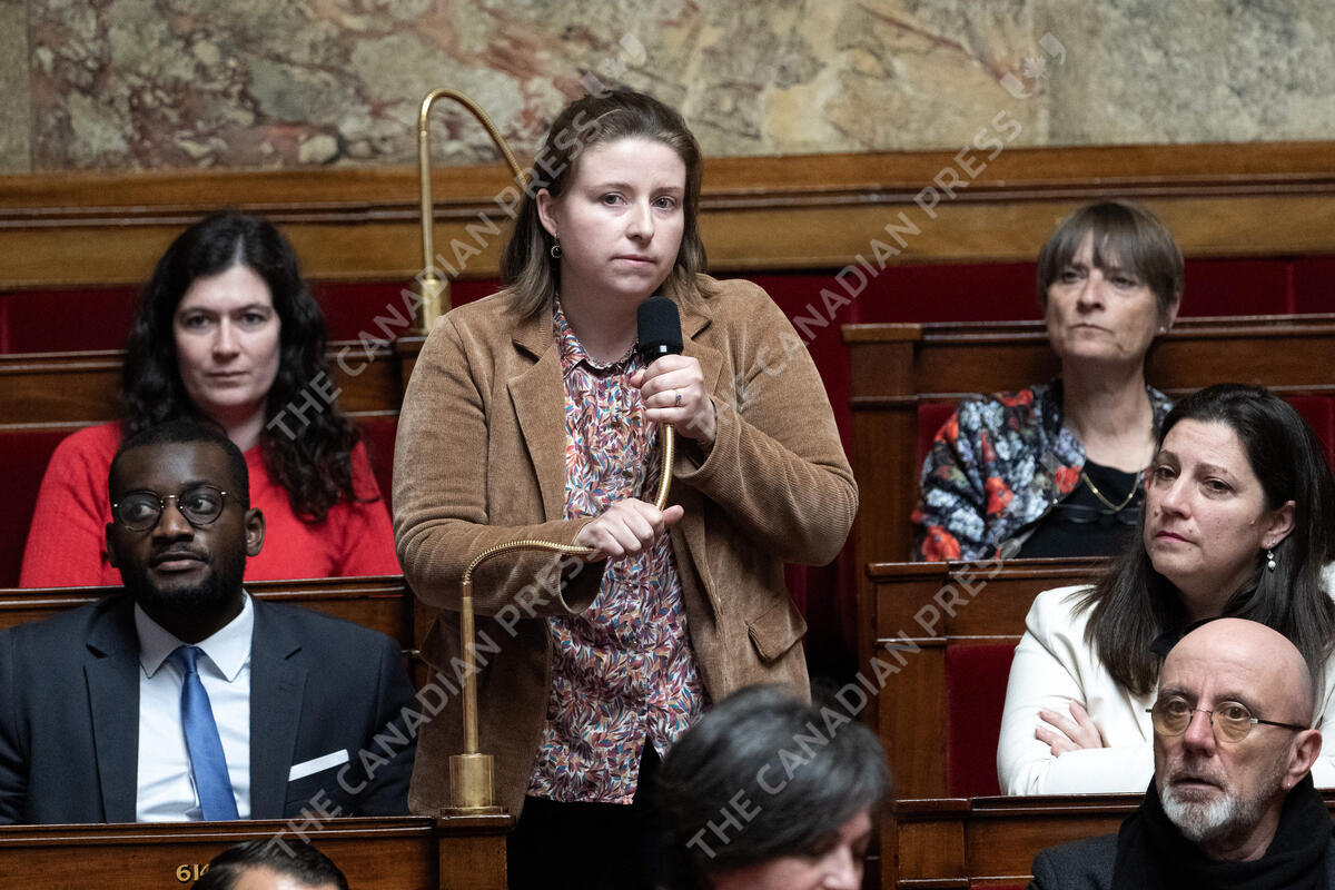 Deputy, Mathilde Hignet attends a session of Questions to the Government at the French National Assembly, on March 20, 2024 in Paris, France. Photo by David NIVIERE/ABACAPRESS.COM