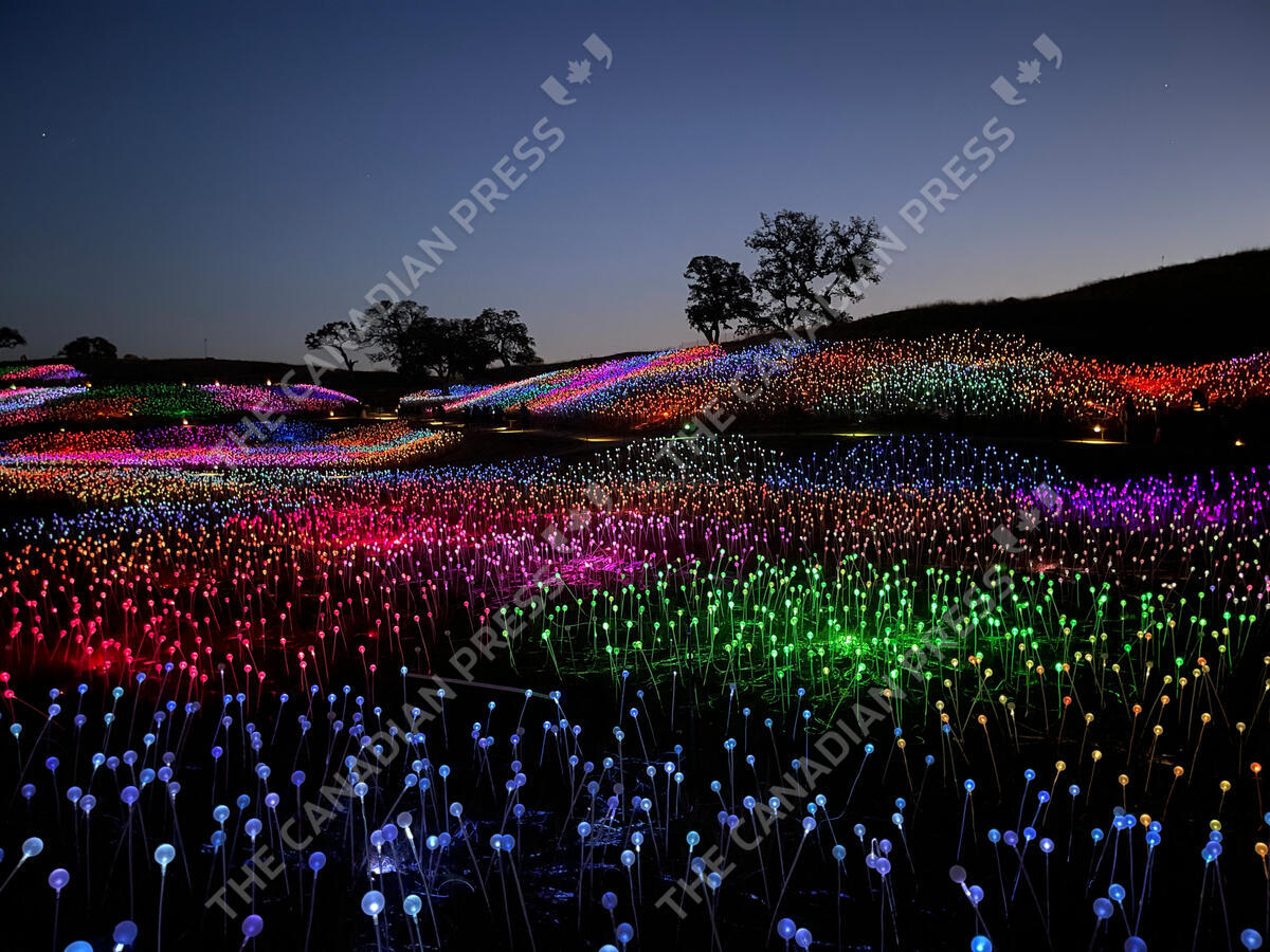 Sensorio art display is an immersive walk-through experience called Field of Light, which includes over 100,000 lighted spheres on stems that gently change color. Paso Robles, CA, USA, October 23, 2023. Photo by Paul Harris Photography/ABACAPRESS.COM