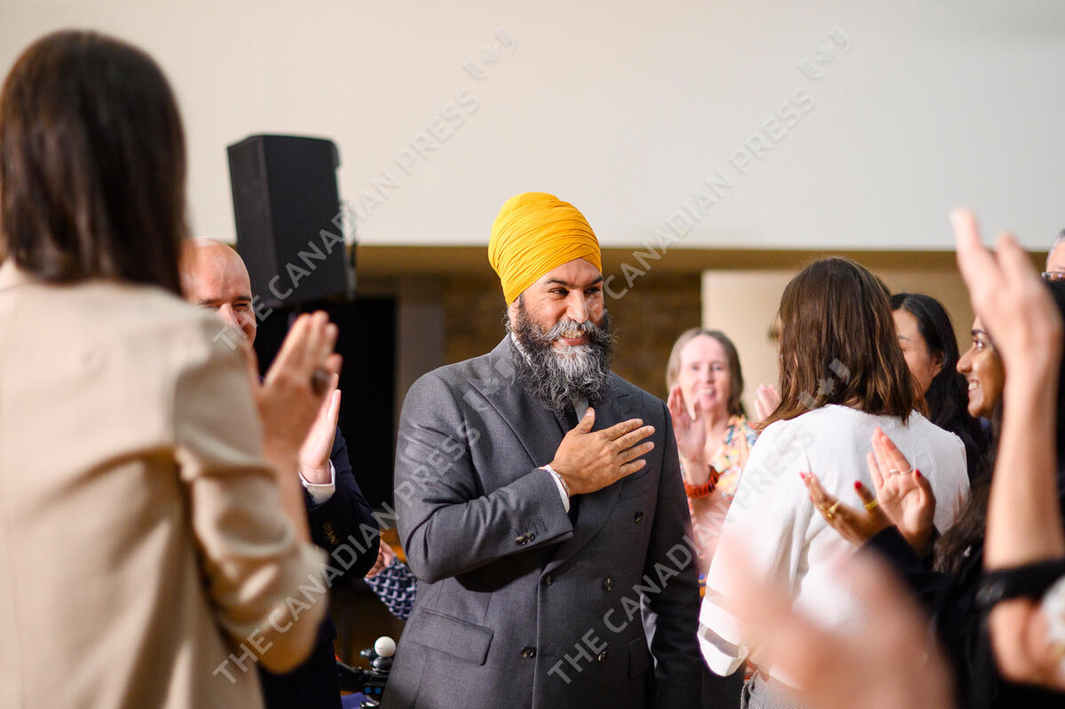 NDP Leader Jagmeet Singh thanks supporters after giving remarks during a press conference in Toronto on Thursday, September 5, 2024. THE CANADIAN PRESS/Christopher Katsarov