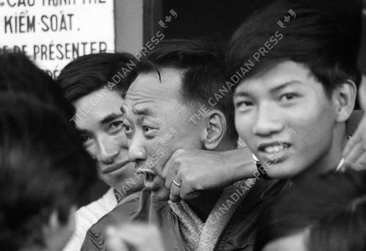 Brig. Gen. Nguyen Ngoc Loan, chief of Vietnam's National Police Force tells stories to college students presently living in the bombed out Cercle Sportif in Hue, Vietnam in March 1968. It was obvious to their reaction to him that he had won them over on his side. (AP Photo/Eddie Adams)