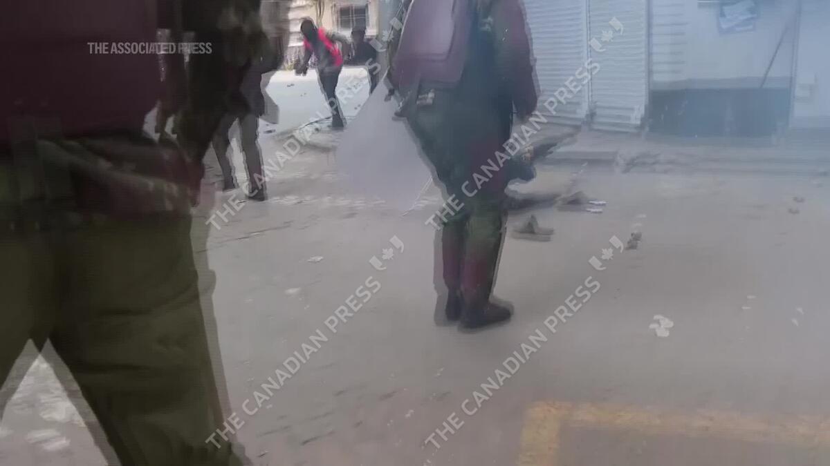 Riot police fired tear gas at the protesters and could be seen beating up one man.