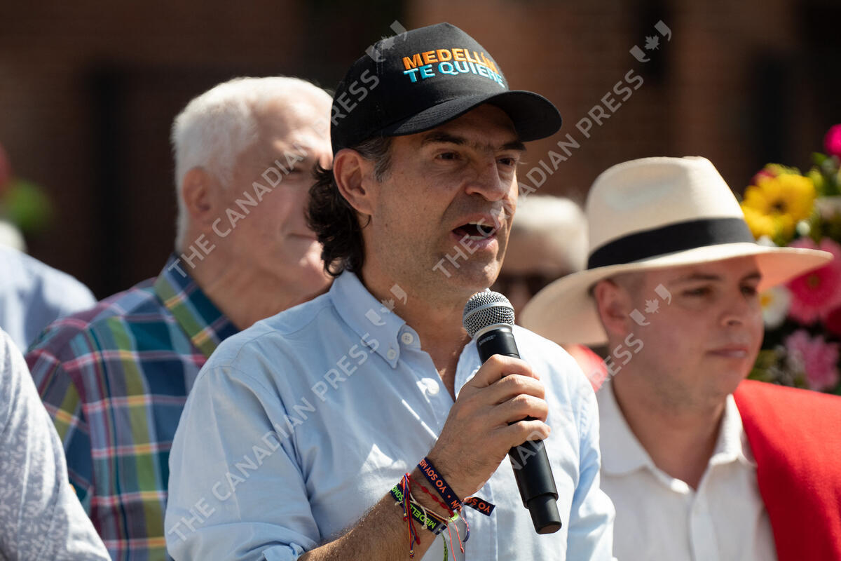Medellin's mayor Federico Gutierrez speaks to the media during a press conference for the prepararions of the Flower Fair 'Feria de las Flores, in Colombia, June 21, 2024. Photo by: Camilo Moreno/Long Visual Press/ABACAPRESS.COM